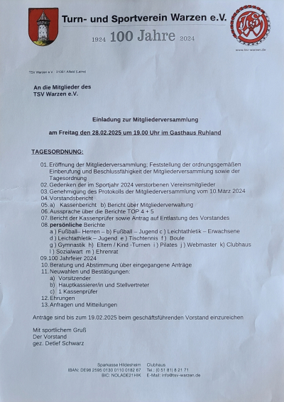 An die Mitglieder des TSV Warzen e.V.